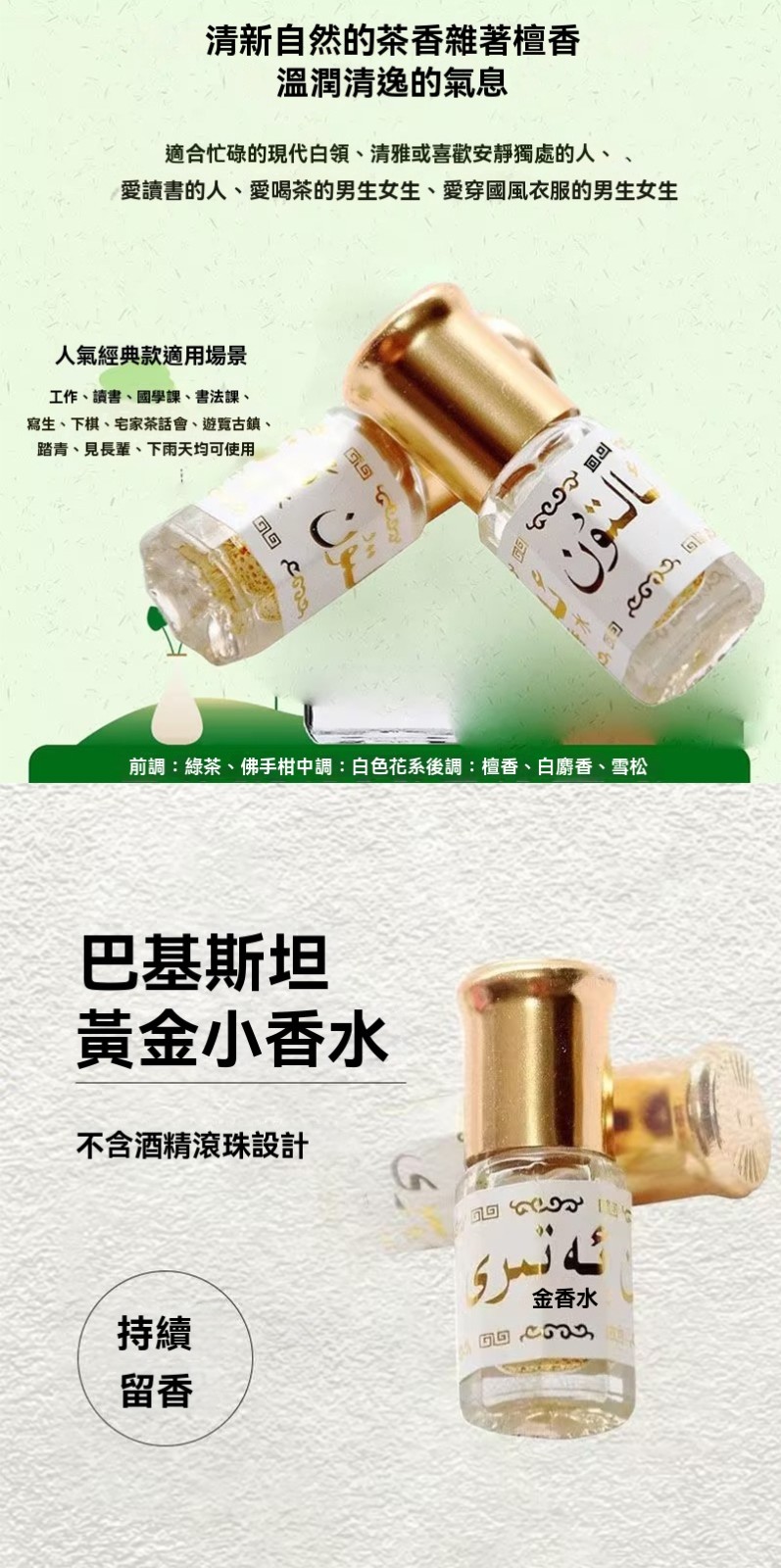 5分鐘前巴基斯坦黃金香水的主要成分是不含酒精,不含麝香的高純度香精。 這種香水以其高濃度和持久留香的特點而受到關註。它的香味被描述為奶香奶氣的,帶有一種保護欲,聞起來非常舒適。香水的香味被形容為清雅的奶香,適合日常使用;巴基斯坦黃金香水以其高純度和持久留香的特性,能夠散發迷人的魅力,類似於古代歡宜香的效果,因此被賦予了歡宜香的稱號。這種香水不僅具有自然體香的效果,還能在特別場合帶來愉悅與放松的感覺, - 【團購優惠】24入組-NT$1280